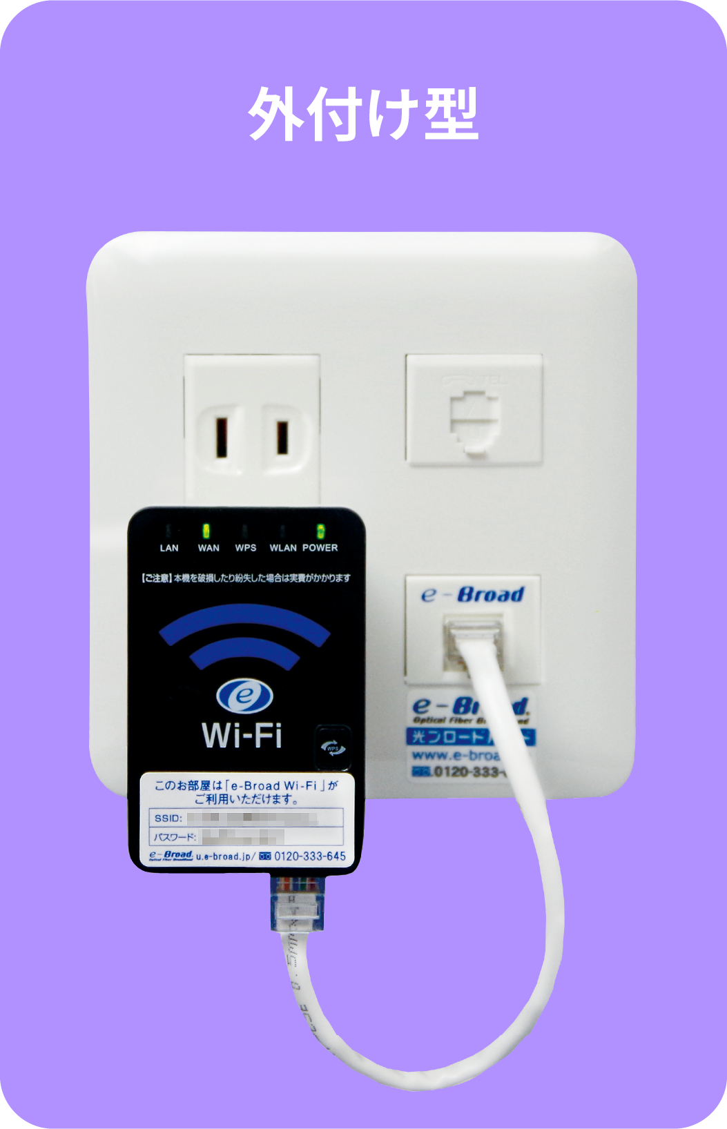 ※ Wi-Fiアクセスポイントは設置されおりませんが、家電量販店などでAPモード搭載のWi-Fiルーターを ご用意いただくことにより、スマートフォンでもイーブロードのインターネットサービスをご利用いただく事ができます。